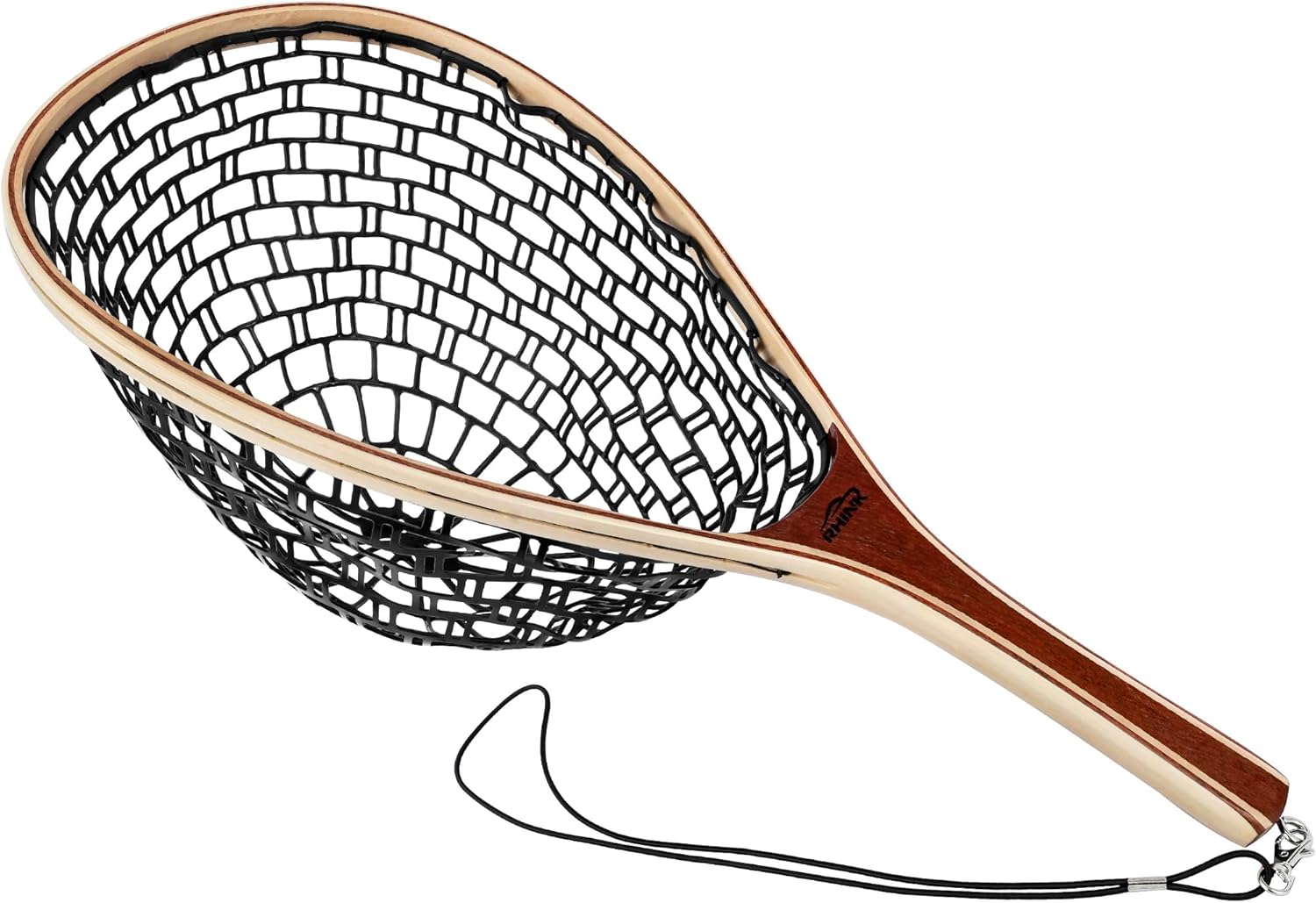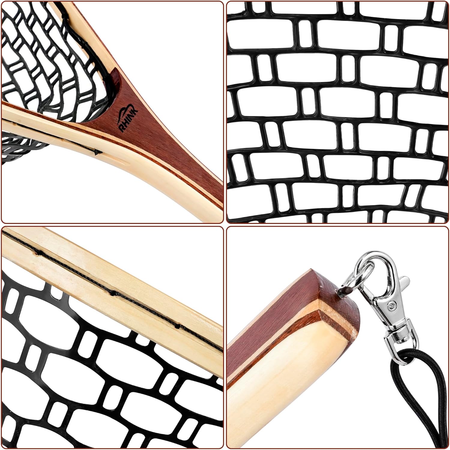 Landing Net for Fly Fishing, Trout Fishing Net, Soft Rubber Catch and Release Fish Net with Wooden Handle